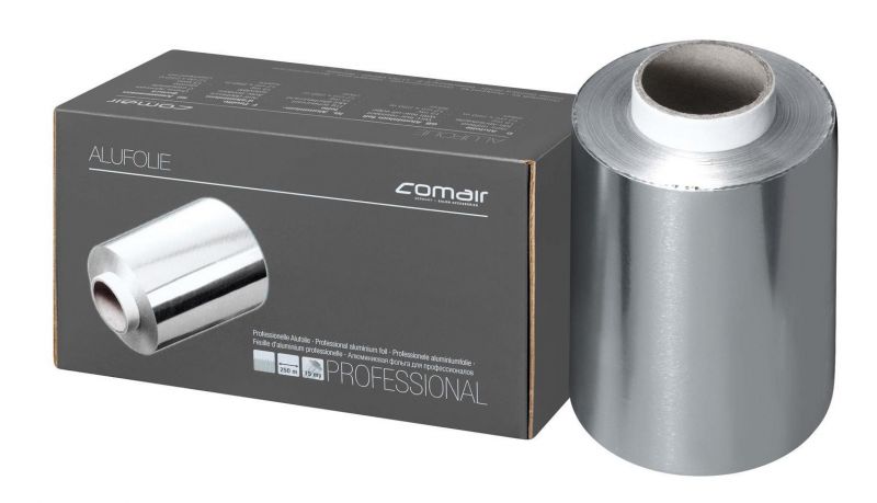 Comair Alu-Strähnenfolie 15µ 12cmx250m silber Alufolie Comair Strähnenfolie & Hauben sehr reißfest 12 cm x 250 m passt in alle Comair Dispenser Alu-Strähnen-Folie Sehr reißfest, eignet sich bestens zum Strähnen setzen, mit Abrisskante, passt in alle Comair Dispenser, 12 cm x 250 m. Die Comair Alu-Strähnenfolie ist eine hochwertige Folie für den Einsatz bei Friseurarbeiten. Mit einer Dicke von 15µ und einer Breite von 12cm ist sie ideal für das Strähnen von Haaren geeignet. Die Länge von 250m ermöglicht eine lange Nutzungsdauer, bevor die Rolle ausgetauscht werden muss. Die silberne Alufolie hat eine glatte Oberfläche und ist leicht zu handhaben. Sie lässt sich mühelos falten und formen, um die Strähnen präzise abzuteilen und vor Farbverläufen zu schützen. Die Folie ist hitzebeständig und kann daher auch beim Einsatz von Wärmequellen wie Föhn oder Lockenstab verwendet werden. Die Comair Alu-Strähnenfolie ist von hoher Qualität und sorgt für ein professionelles Ergebnis bei Friseurarbeiten. Sie ist hygienisch, da sie nach jeder Verwendung einfach entsorgt werden kann. Die Rolle ist platzsparend und lässt sich einfach im Friseursalon oder zu Hause aufbewahren.