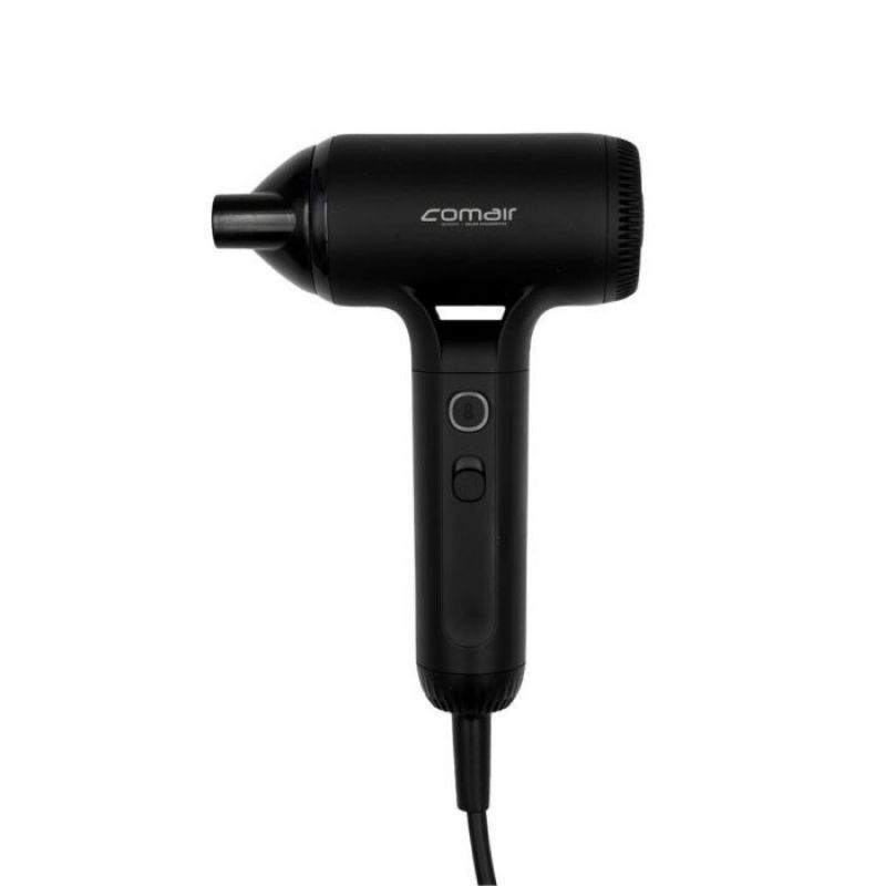 Der Comair HT T Compact ist ein ultraleichter Haartrockner mit nur 250 Gramm, der dank seines bürstenlosen Motors mit bis zu 110.000 Umdrehungen pro Minute eine beeindruckende Leistung liefert.