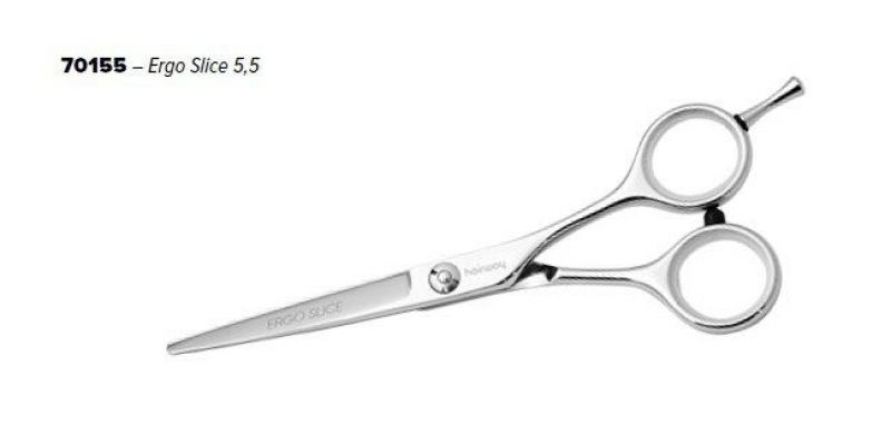 Friseurscheren ›ERGO‹ Produkteigenschaften professionelle Haarscheren konvexes Blatt verstellbares Schraubensystem Offset-Griffform mit Silikonpuffer austauschbare und allergikerfreundliche Silikon-Ringe Edelstahl 420J2 Rockwell-Härte 55-56 HRC Weitere Informationen Artikel-Nr.: 70155: Haarschere ›Ergo Slice 5,5"‹ 70160: Haarschere ›Ergo Slice 6,0"‹ 70255: Effilierschere ›Ergo 32 5,5"‹, 32 Zähne