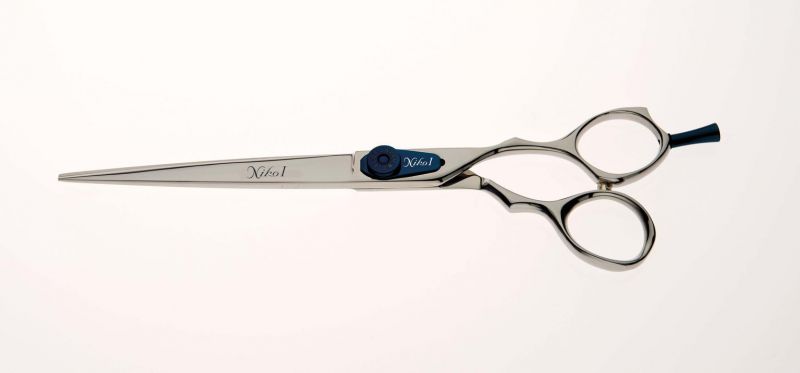 Nikarma Haarschneideschere Niko I Blue Dial H-650 6,5" ergonomisch Nikarma Haarschneidescheren mit abnehmbarem Fingerholder enorm leicht lange Lebensdauer Top All-Round-Schere, geeignet für alle Nass- und Trockenschnitte und spezielle Slice-Techniken • Handgefertigt aus Hitachi Japan VG10 Premiumstahl mit einem hohen Cobalt-Anteil, dadurch ist die Schere leichter und hat eine lange Lebensdauer. • Die Scheren unterliegen einem enormen Härte- und Schärfe-Verfahren • Convex Hohlschliff, rasierklingenscharf • Beide Klingenaußenseiten mehrfach konkav geschliffen • Computerberechnete Ergoform zur optimalen Arm- und Handentlastung • Abnehmbarer Fingerholder, geschraubter Stopper • Die Scheren können mehrmals geschärft werden